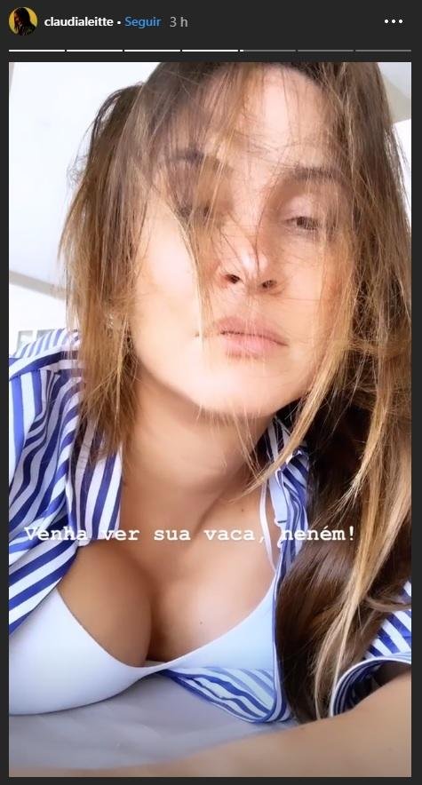 E no mais recente deles Claudia brincou sobre o tamanho de seus seios. Em foto, mostrou que há muito leite para alimentar a pequena. "Venha ver a sua vaca, neném", escreveu.