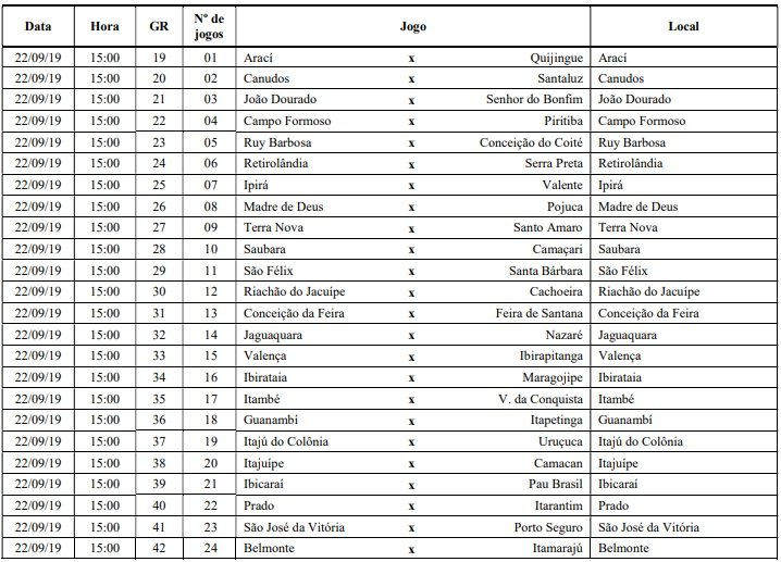 Os confrontos da segunda fase do Campeonato Intermunicipal estão definidos. Neste domingo (15) aconteceu a última rodada da fase de grupos. Quijingue, Canudos, Santaluz, Araci, Senhor do Bonfim, Campo Formoso, Piritiba, João Dourado, Conceição do Coité, Valente, Retirolândia, Serra Preta, Ipirá, Ruy Barbosa, Pojuca, Camaçari, Terra Nova, Santo Amaro, Saubara, Madre de Deus, Santa Bárbara, Feira de Santana, Riachão do Jacuípe, Cachoeira, Conceição da Feira, São Félix, Nazaré, Maragojipe, Valença, Ibirapitanga, Ibirataia, Jaguaquara, Vitória da Conquista, Guanambí, Itapetinga, Itambé, Uruçuca, Ibicaraí, Itajuípe, Camacan, Pau Brasil, Itajú do Colônia, Itarantim, Belmonte, São José da Vitória, Porto Seguro, Itamaraju e Prado seguem na briga pelo título.