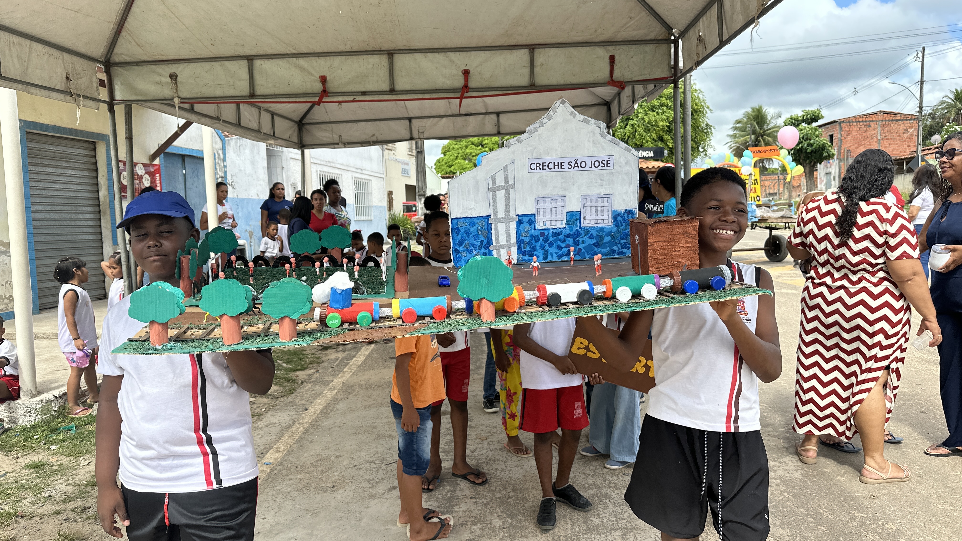A caminhada contou ainda com o apoio dos alunos da Escola Municipal José Honorato, vizinha à creche, que se juntaram ao percurso e reforçaram o caráter comunitário da atividade.