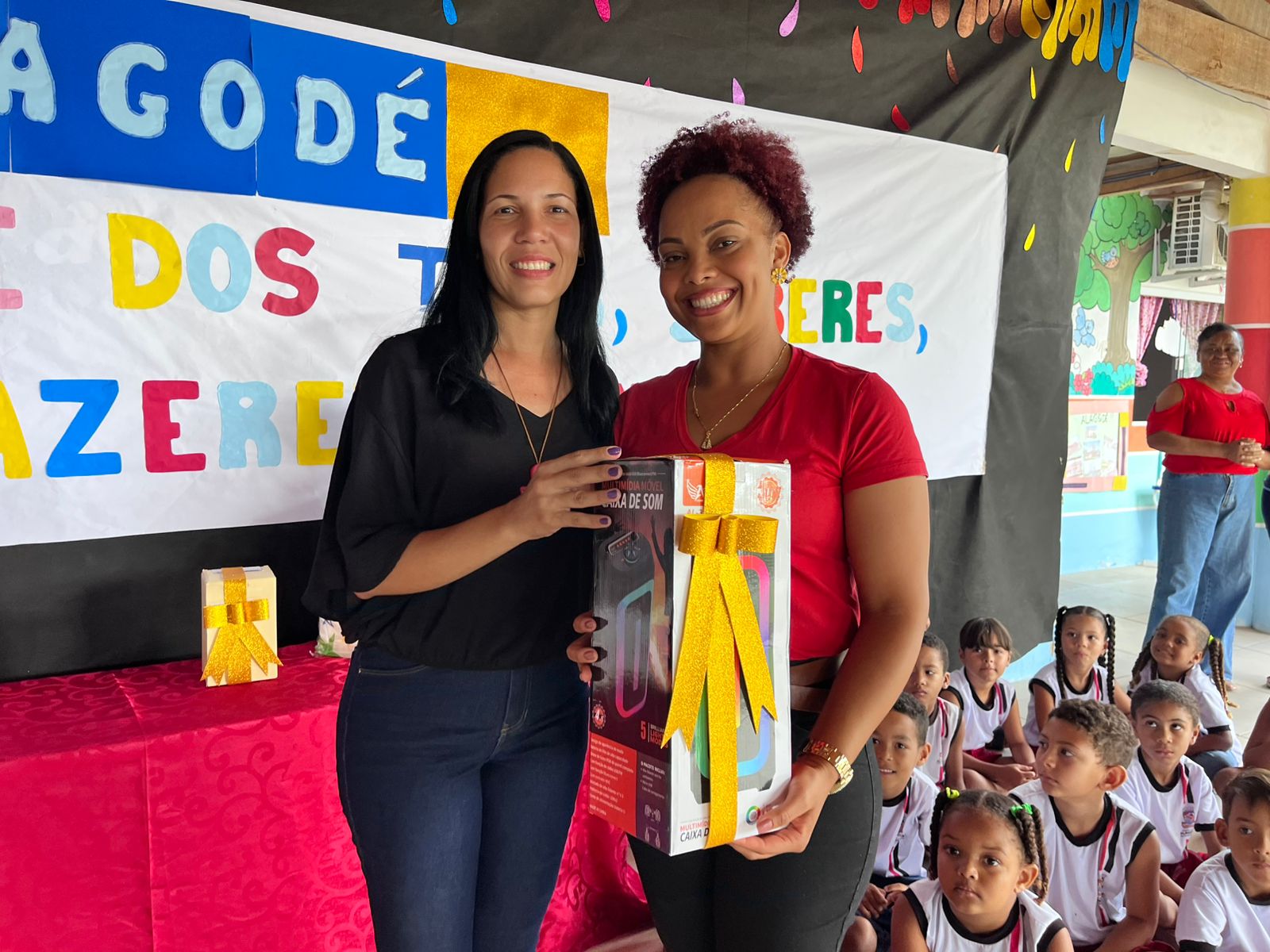 Alunos e professoras do G4 e G5 da Creche Rosário da Caridade, na Alagoinhas Velha, foram premiados com o segundo e terceiro lugar na edição 2025 do concurso seletivo “Núcleo de Educação Ambiental e Boas Práticas Pedagógicas”, da Bracell, que contemplou projetos de escolas da Rede Municipal de Ensino da Bahia.